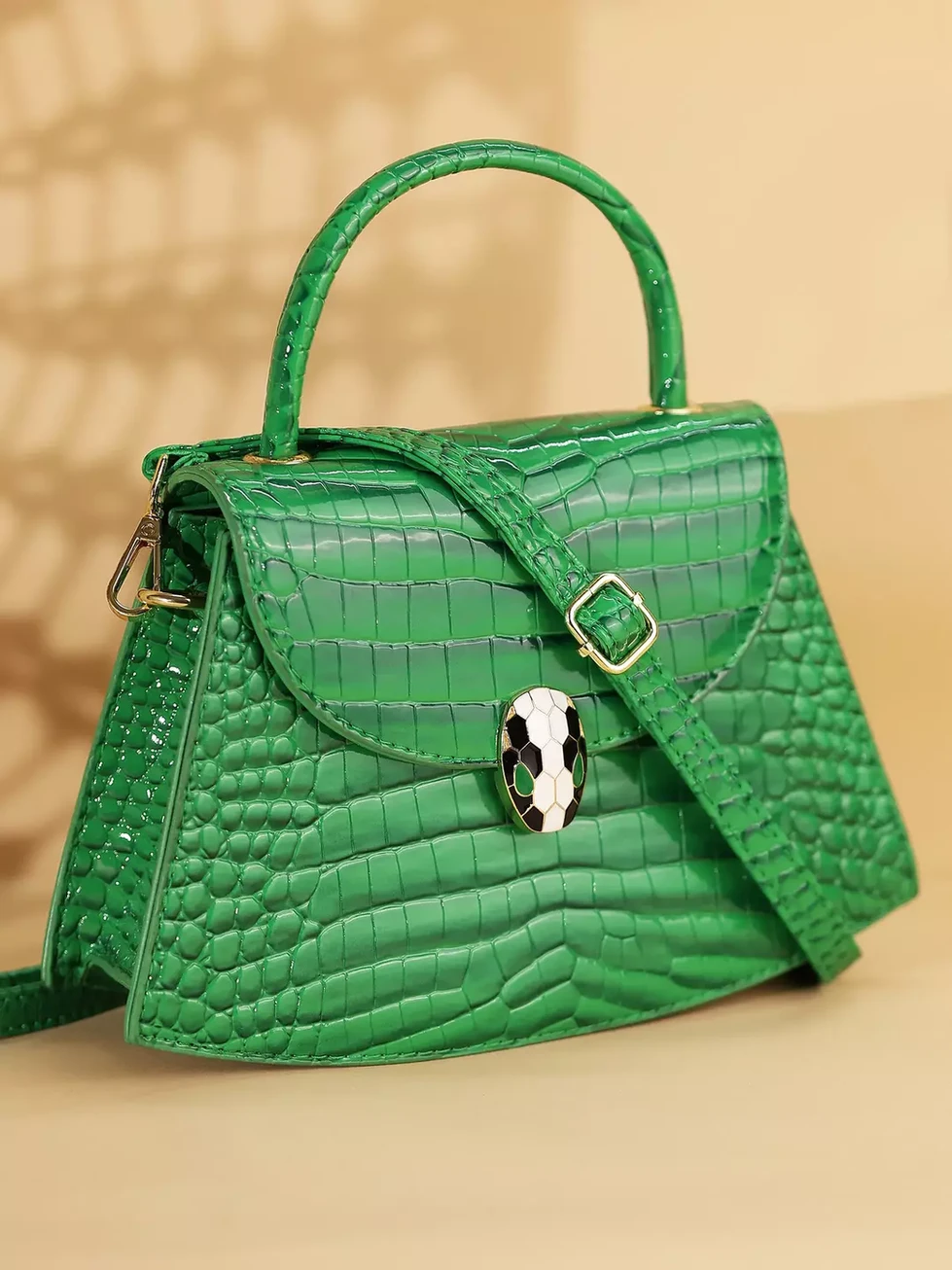 | Chic Crocodile Print: The eye-catching crocodile texture adds depth and sophistication to the vibrant green color. |